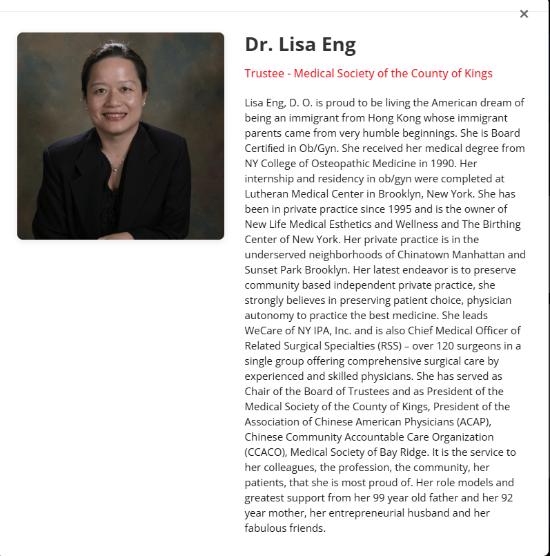 Dr. Lisa Eng – Trustee – Medical Society of Kings County